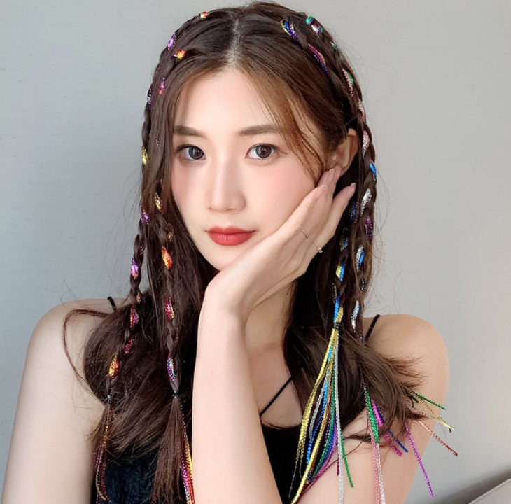 这种发型适合发质浓厚,发量多的小女孩子,发量少的女孩子不要尝试,以遮脸的刘海来突出五官的立体和甜美,卡哇伊风特别迷人,而且小辫子上搭配丝巾更加美观清新。