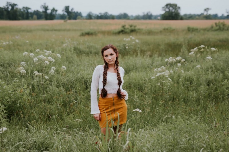 2:从右边发束的外侧挑出一小束头发,然后将这束头发加入到左边的发束中。