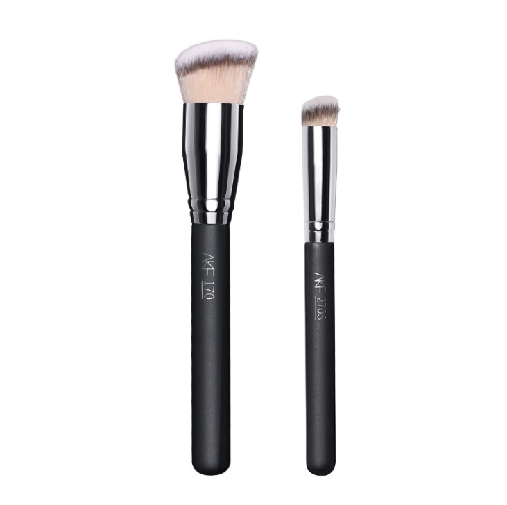 比起松散的圆形的刷子,这种扁平的小刷子上鼻影更加自然,能够完美贴合鼻翼两侧的弧度,大小也刚好,需要注意的是,鼻影刷非常考验刷子的质量,因为鼻侧影需要不断晕染,包括鼻头部分的阴影也要晕染,如果刷子的毛太过粗糙,会刺激毛孔,而我们都知道,黑头、白头聚集的地方正是鼻子部分,毛孔比较大的也是鼻子附近,所以鼻影刷一定不要将就。
