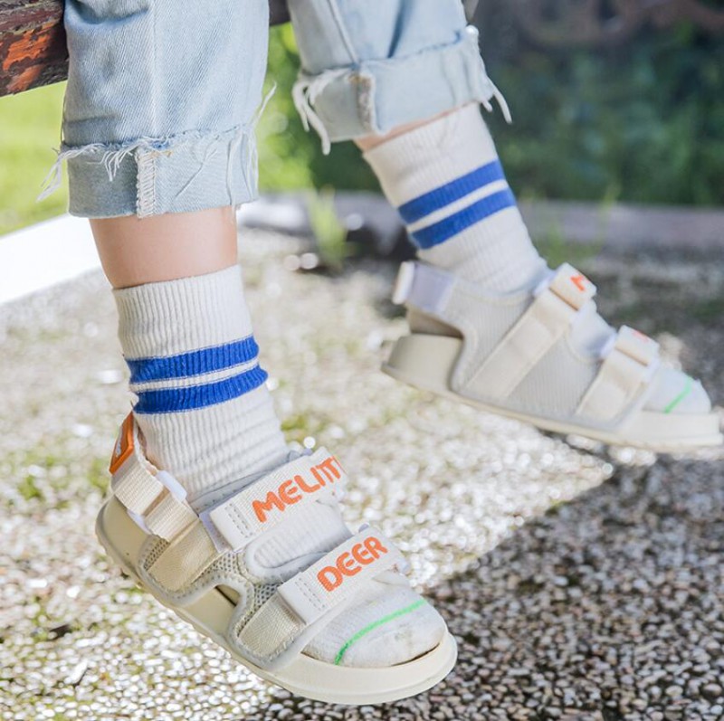 3、由于夏季是孩子最长脚的季节,而且相对时间较长,所以孩子要储备两双以上的凉鞋,而且最好尺码大小有一码以上的差距。