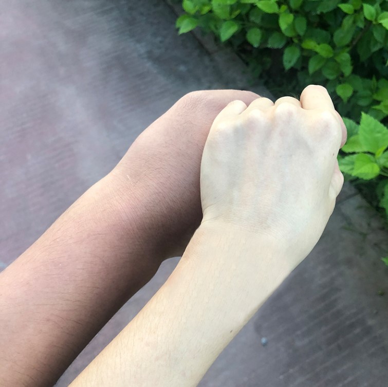 果手腕的血管是绿色的,一般情况是黄调(暖调);如果手腕的血管是蓝色或者紫色,一般情况就是粉调(冷调);如果手腕的血管三种颜色都有,那就是中性调了。如果你非常容易晒伤,或者说不撑伞根本没法暴露在阳光下,那你就是粉底中的最浅色,也就是一白;如果你脸被晒伤后皮肤就变黑变红,那就是二白;如果你夏天很容易变成古铜色,那就是三白。