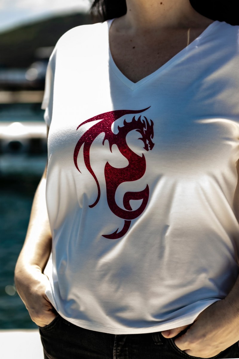如果你想要毛边的V领,而不是镶边的领口,就紧沿着后领的领线剪下后领。如果你喜欢毛边领口,那么你的V领T恤就完成了。