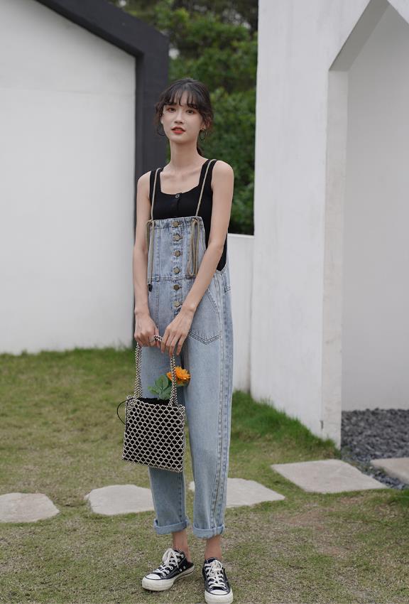 要说轻松减龄又散发着时尚少女气质的长裤有哪些?那肯定非牛仔背带裤莫属了。时尚百搭的牛仔背带裤,随意搭配一件长袖T恤或者衬衫,就能够让你轻松凹出各种时髦造型。而且它能让你轻松减龄,让你感觉萌萌哒。优质纯棉面料,柔软、舒适、透气,不规则破洞设计,有种放荡不羁的街头范。舒适中腰版型的牛仔背带裤,跳脱传统的平庸,更能魔术贴合小腹,舒适展现平腹,让腰腹更加轻松自如,石魔、破洞、猫须压褶套色等,时尚潮流。背带裤以经典的小脚铅笔裤裤型设计,时尚百搭,修身显瘦,加上背带的款式,俏皮可爱,充满青春活力气息。