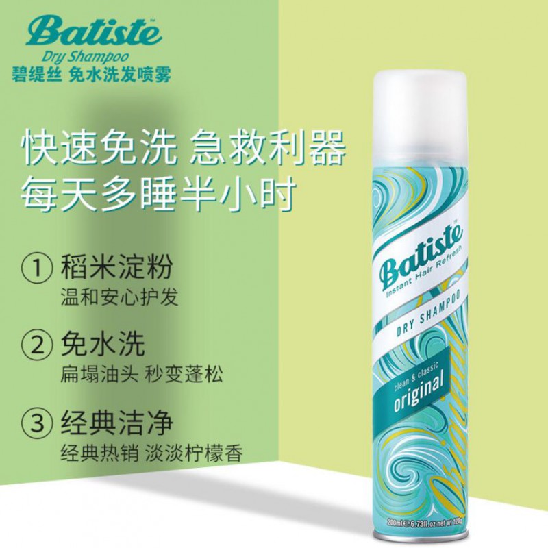 2、干洗喷雾:干洗喷雾可以说是油头妹子的福音,头发油了就喷一喷,立马就变得清爽蓬松。遇到经期、出差、生病等不方便洗头的情况, 干洗喷雾真的很有帮助。吃完火锅有味道,也可以用来去除头发上的火锅味。干洗喷雾含有大米淀粉成分,细腻粉末,能够吸附头发多余油脂;质地柔滑,很容易涂抹开;有多重味道可以选择,去除油脂的