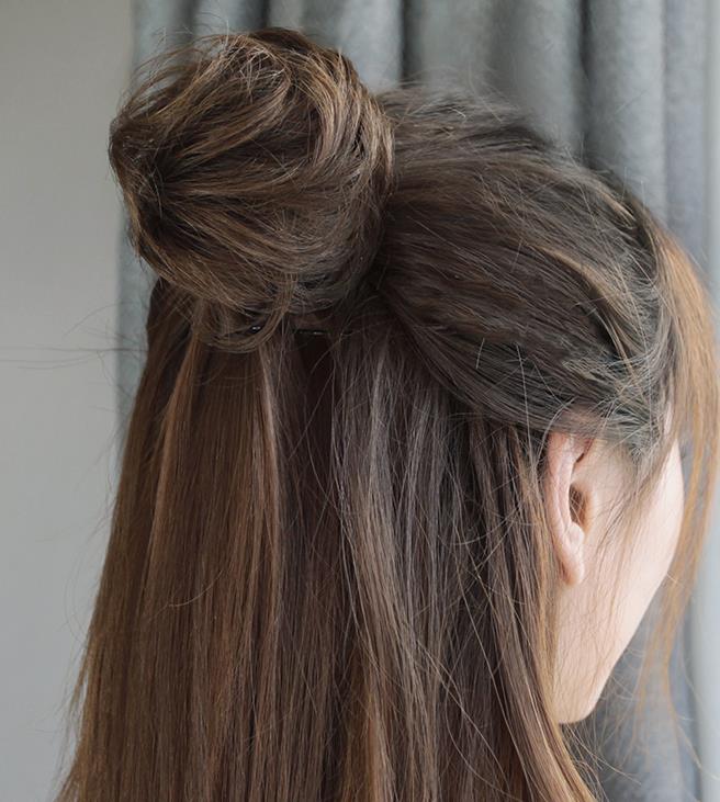 短发也能扎起半扎丸子头,将刘海一并梳起,露出干净清爽的小脸,搭配着一件白色上衣,女神气质十足,带刘海的半扎丸子头可能会更加具有少女的气息。