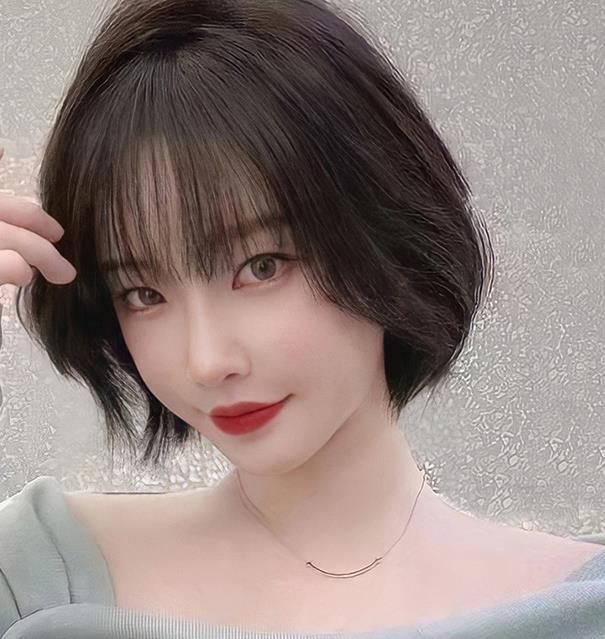5可爱、俏皮好看的女生短发发型话合脸型:椭圆形。此款发型是打造气质型可爱小美女的经典发型,顺直而下的头发给人飘逸的感觉,发尾用电吹风或电卷棒稍稍往内侧卷,包裹住整个脸型,就给人温柔中不乏俏皮的感觉。