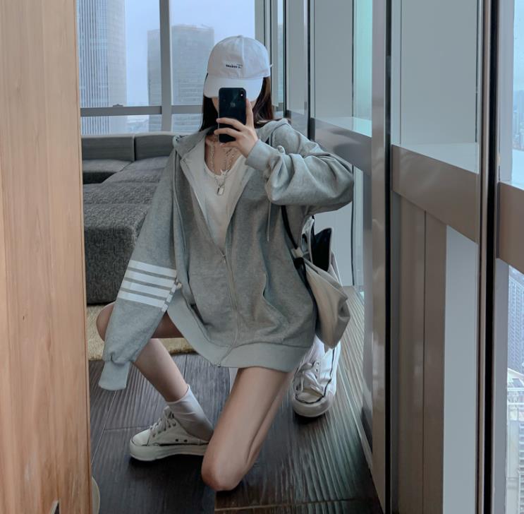 宽松卫衣+破洞裤:紧身破洞裤,脚下一双白色运动鞋,很显瘦又休闲的穿搭,破洞裤的选择也是非常讲究的,最好选择紧身款,最重要是还减龄显嫩,经典又不失时尚。