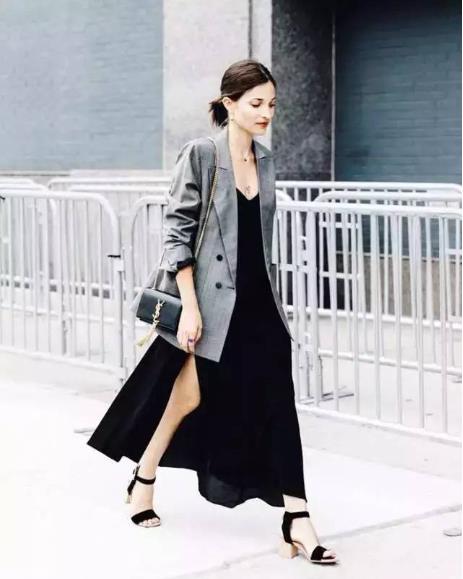 黑色连衣长裙是非常百搭的衣服,可以与任何颜色的外套相搭配,比如韩版小西装外套,入秋之后就可以这样穿;还有短款牛仔外套,搭配黑色的长款连衣裙,非常的显瘦,显身材。