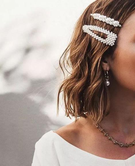 今年最火就是珍珠发卡了,珍珠发夹的宽度不同,戴法也不一样。宽版的,尤其适合短发佩戴,有种日系萌妹的感觉。不过宽版的适合单独佩戴,两个放到一起会过于拥挤,看上去美观程度降低不少,有点太夸张了。细版的,最好是两个并排装饰在头发上,这样出来的造型饱满整齐。也可以一宽一细搭配在一起,很有层次感。细版的,单独戴会特别秀气,很适合文静气质的姑娘。扎丸子头时戴一个,复古风情爆棚了简直。公主头或者梳马尾时,别在后面,也不错。