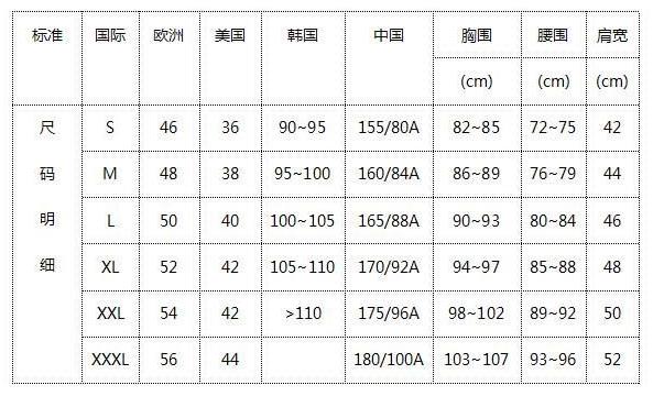 上装衣服的是按照型号来表示的,具体有S码、M码、L码、XL码等,这些型号对应不同上衣的身高、胸围尺寸、衣长、袖长和肩宽。在选择尺码的时候可以根据自己的数据进行挑选。