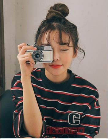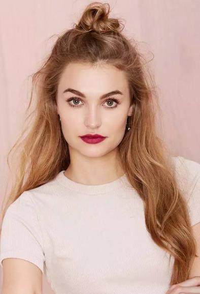 半丸子头也是很时尚俏皮的一款发型,半丸子头比较适合小脸蛋的人,圆脸、鹅蛋脸、瓜子脸都很适合半丸子头。半丸子头很清新甜美,俏皮可人,瞬间减龄,时髦吸精,看着整个人都很有朝气与活力,让你颜值翻倍!是一款很有朝气与活力的发型,展现你的清爽个性,直发卷发都很是美丽。
