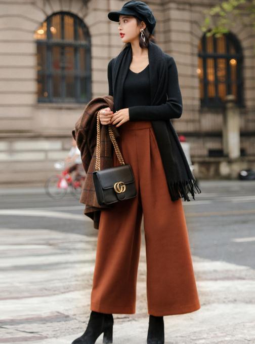 成熟女性搭配,必须有一双高跟鞋呀。成熟的你肯定要入手一双高跟鞋,气质就出来了,阔脚裤有点像西装裤版型,所以要成熟点的搭配高跟鞋最是好看。