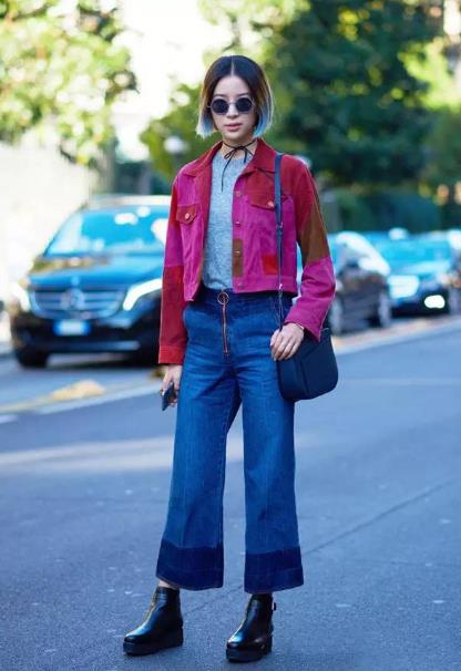 1. 牛仔喇叭裤+时尚短靴 牛仔的随行搭配时尚短靴的摩登,一阵混搭气质扑面而来,即可摇滚又可优雅。