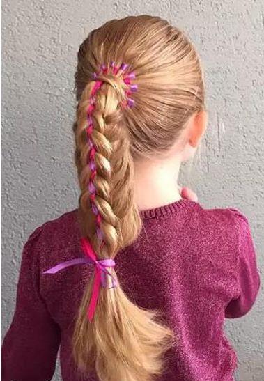 第二种:可以把头发扎成这好看的双麻花辫子发型,这样看着小女孩是特别可爱的。