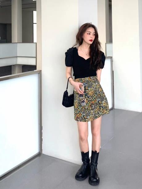 5. 泡泡袖上衣搭配鱼尾裙 这款泡泡袖上衣上身的效果就是时尚又带着几分可爱的感觉,宽松的版型不挑身材,爱心的印花图片非常有女生浪漫纯真的感觉,搭配一款鱼尾裙,极具女人的魅力,且开衩的款式,若隐若现的美感,复古又足够性感,足够吸睛。
