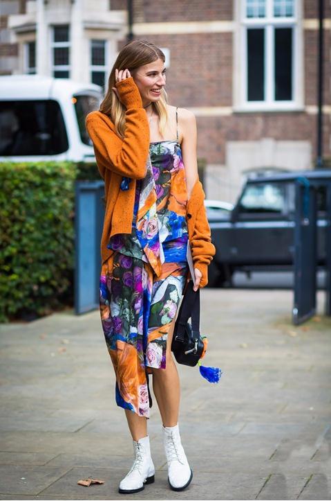 中长款的吊带连衣裙不管是高个子还是娇小的女孩都可以驾驭的很好,而吊带连衣裙搭配皮衣真是一对完美的Cp,让你在帅气中带点妩媚,无论是搭配什么鞋类都会有自己的味道。
