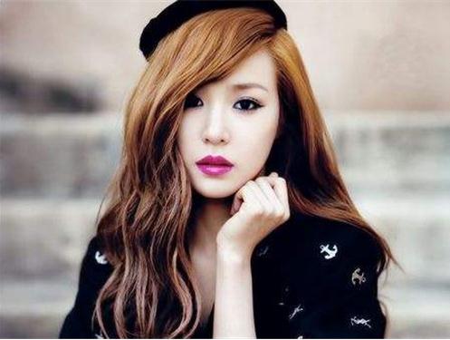 3. 大脸女生适合的螺旋卷长发:外翻长刘海,发尾螺旋卷,尽显成熟时尚女性魅力,橘红色染发,更增添潮流气息,是大脸的OL职业女性不错的选择。