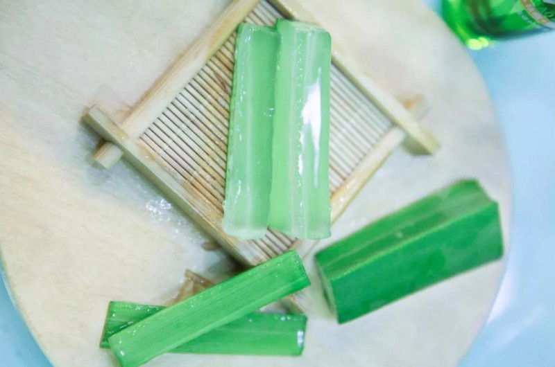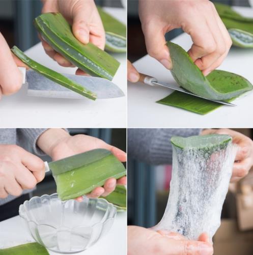 1、把新鲜芦荟里面的芦荟刮出来;