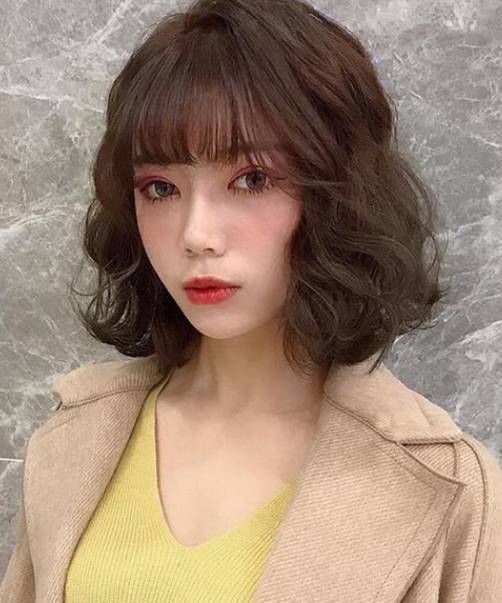 比较有个性的短发是短刘海与烫发尾的结合,把刘海的长度剪到露出眉毛的位置,然后用直板夹或者是卷发棒轻轻把刘海卷一下,卷成内扣的效果,稍微弯曲,有一个俏皮的弧度。