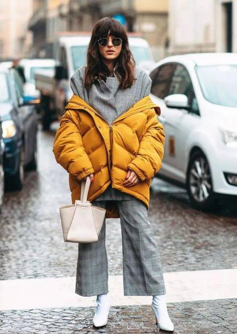 同一种材质的灰和粉相配在一起,如果比例又是对半分的话,整体会显得沉闷寡淡。面料质地有所落差,能够产生层次感整体搭配才会更好看。比如用华丽的羽毛,配平凡的针织;明亮的金属色皮革,配针织。其实很多人的搭配问题,归根结底都是配色问题。只要修炼一下对颜色的敏感度,好好去感受每一种色彩的语言。在这之上再考虑身体色与服装颜色的关系。