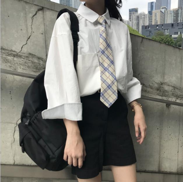 1、jk制服领带可以和白色的衬衫搭配在一起,装上去之后显得人特别的有精神,而且也是非常的帅气,非常适合一些上班族来进行穿搭。
