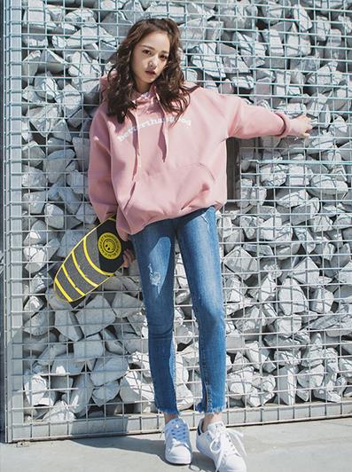 蓝色牛仔裤可以说是万能裤,它可以搭配任何风格的上衣,无论是俏皮可爱,还是青春活力,或者优雅性感等,它都可以驾驭。所以,选择搭配粉色卫衣的下装,牛仔裤是一定不容错过的裤子单品。
