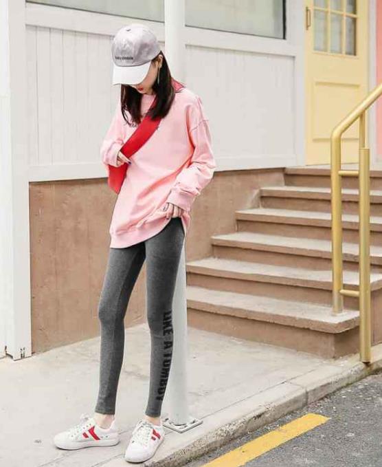 粉色卫衣也可以搭配一条浅粉色的裤子,这样整体搭配会有种渐变感。而且在颜色上也会显得更加统一,也会有种套装既视感,是不容易出错的穿搭方式。