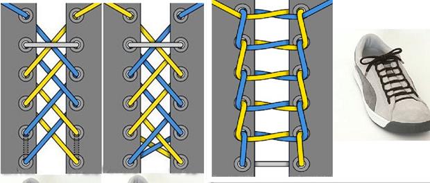 4、反复之后,剩下的鞋带塞到内侧打结处理;