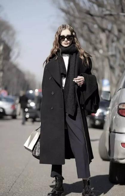 黑色是一种很高级很经典的颜色,这个色调内敛又深沉,并且也可以很复古很高贵哦。黑色大衣搭配纯黑色的围巾也特别合适,看起来有着满满的低调时尚感。并且,黑色的围巾还能起到衬托肤色的作用,肤色白皙的朋友最合适啦!
