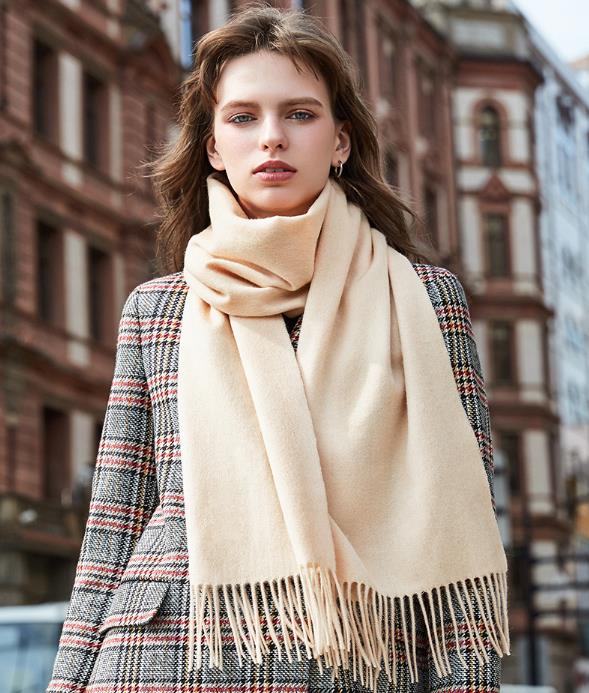 2. 羊绒围巾怎么搭配衣服呢?如果是薄款的西装,一定不能搭配厚厚的羊绒围巾,羊绒围巾只能和比较厚重的西装搭配。