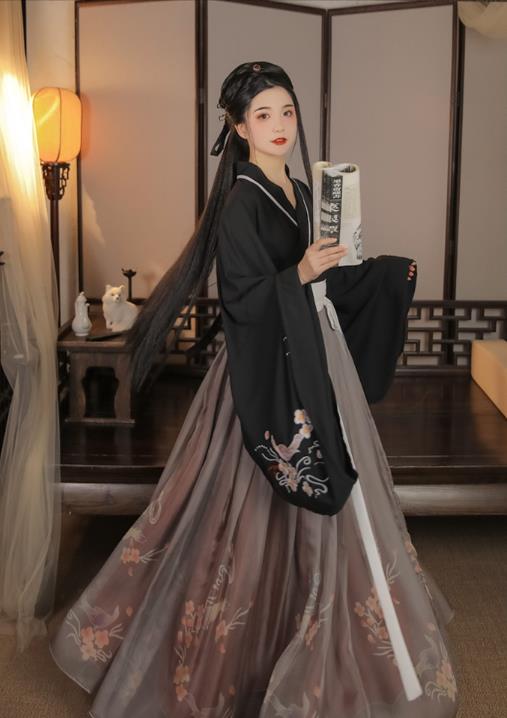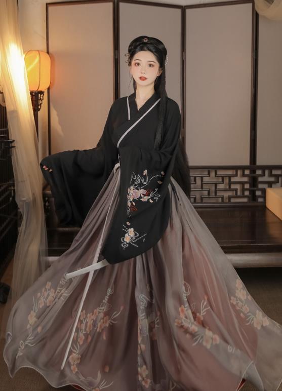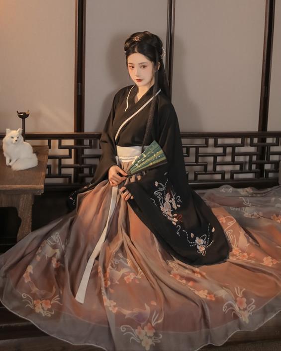 2. 直裾:流行于秦汉时期,后来衍生出多种款式,如直裰、直身等。日本和服很大程度上学习于此款。
