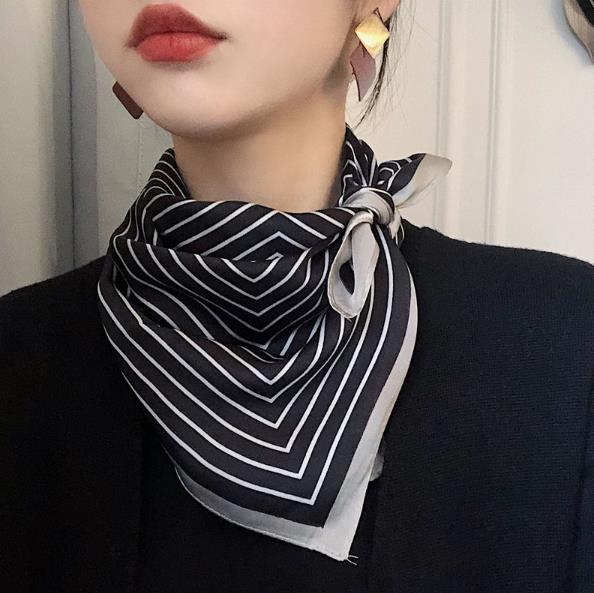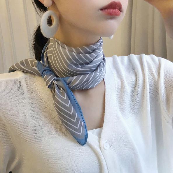 1. 小方巾围脖子 方巾围法步骤 将小方巾对角折叠,然后在将对折出来的菱角进行卷折,让看不见那尖尖的一角。 然后缠绕在脖子上,以最简单的平结做固定,如果太长可以在打一个平结,整理两角形成蝴蝶结形式,就OK了。