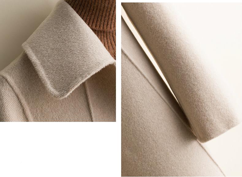 2. 毛呢大衣在手感上不如羊绒大衣手感舒适柔软,稍显硬质。