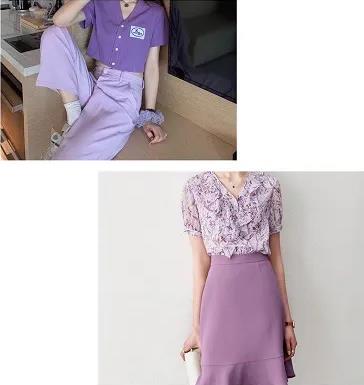 淡紫色是低饱和度的紫色,清新脱俗和完全不挑肤色,搭配白色下装,这个夏季你就是“白雪公主”代言人囖。