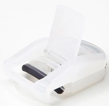 3. 侧推杆 正品睫毛夹的透明侧推杆是“轻轻扣”在本体上卡槽内,两端是有两个直角凸起。而假货凹槽做工粗糙,导致按压板紧紧的扣在卡槽中。
