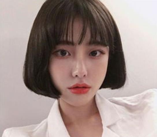 半圆形的斜刘海造型设计可是最显女生十足的温柔淑女风的了,搭配碎发形式的波波头造型与精致的瓜子脸相搭同样甜美吸睛。