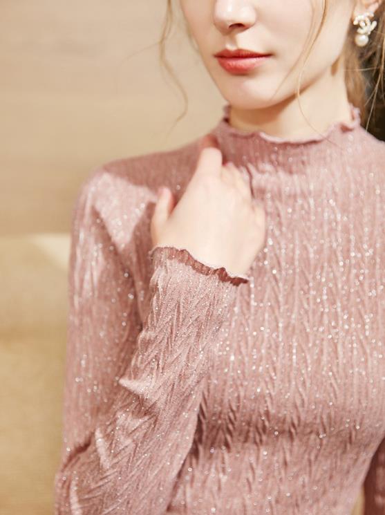 2. 百搭长袖加绒打底衫:这款加绒打底衫,温暖又舒适,娃娃翻领清新减龄,凸现出颈部的纤细修长,蕾丝和漂亮花案点缀,衬托优美淑女柔情。
