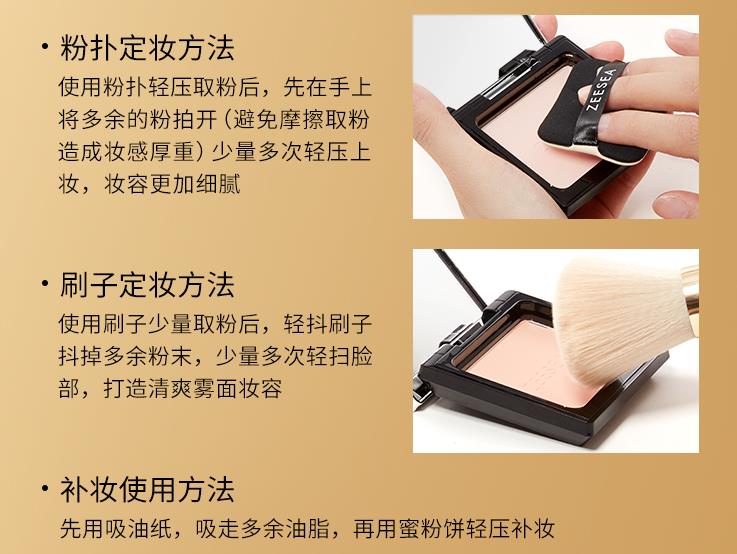 粉饼补妆的方法: