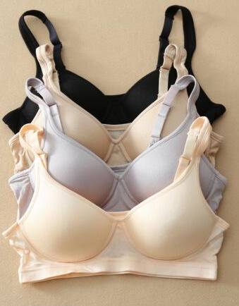 文胸处是人体汗液排泄旺盛的地方,化纤文胸不吸汗不透气,特别是炎热的盛夏,汗液排不出,细菌滋生,不但体味不好,也不利于个人健康,久之.会引起痒子、瘙痒等皮肤病,而纯棉织物透气排汗,夏日穿用十分舒适。