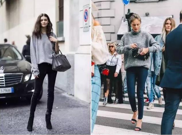look6 黑色V领针织上衣+灰色西装裤+黑色皮靴