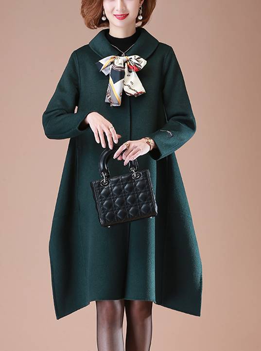 典雅而华丽的墨绿色,因为挺括的面料,还带着光泽感,上身不仅衬肤显白,让你看上去年轻又有气色,精致的花朵刺绣图案,带出不一样的韵味