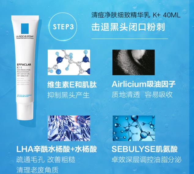 k乳作为精华,疏通毛孔,控制油脂分泌。