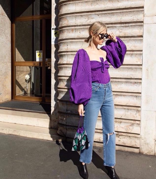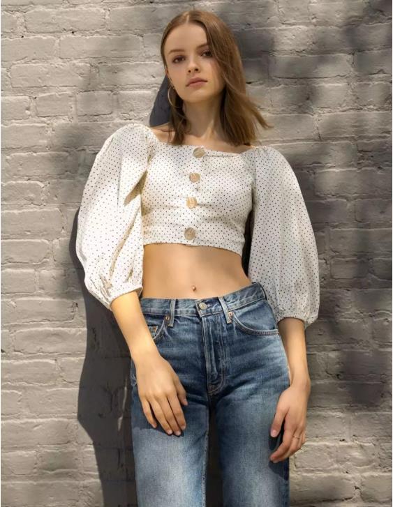 2. 泡泡袖上衣不要搭配设计太复杂的裤子,因为泡泡袖的设计感就是比较强的,再搭配上一天设计复杂的裤子,整体就很累赘,看起来怪怪的,最好是搭配简单大方的裤子,像直筒的、阔腿的款式就很合适。