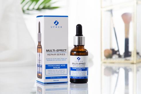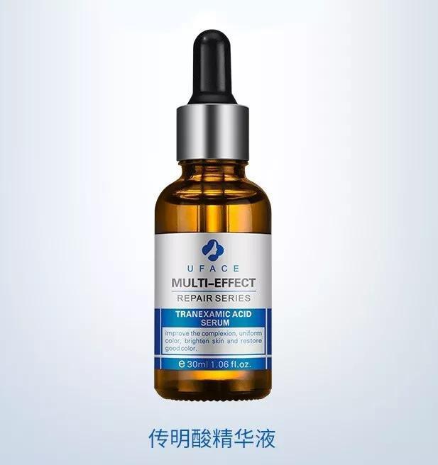 有去除斑点痘印,抑制炎症,对抗暗沉,改善肤色不均的作用。传明酸是一种蛋白酶抑制剂,能帮助抑制黑色素增强因子群,从而能有效地防止和改善皮肤的色素沉积。