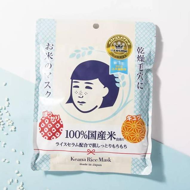 这款稻米面膜是2016上半年COSME大赏面膜部门No.1,属于大名鼎鼎的毛孔抚子系列的最新产品。紧跟近年风靡的整肌面膜风潮,采用大容量环保包装,一袋10片,包含美容液165ml,因为属于整肌面膜,所以可以天天使用,不用担心营养过剩。成分方面,100%使用日本产大米提取制成,富含有机米糠的发酵液,能够补充水份,紧致毛孔,恢复弹力,据说用后就像刚刚煮熟的米饭那样富有白皙滋润并富有弹性。因为不含有任何化学添加成分,孕妇敏感肌都可以使用。同系列还有爽肤水和面霜,建议搭配使用。