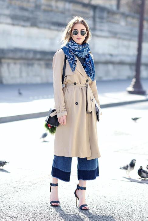 3. 浅卡其色上衣搭配:浅卡其色外套+蓝色毛衣