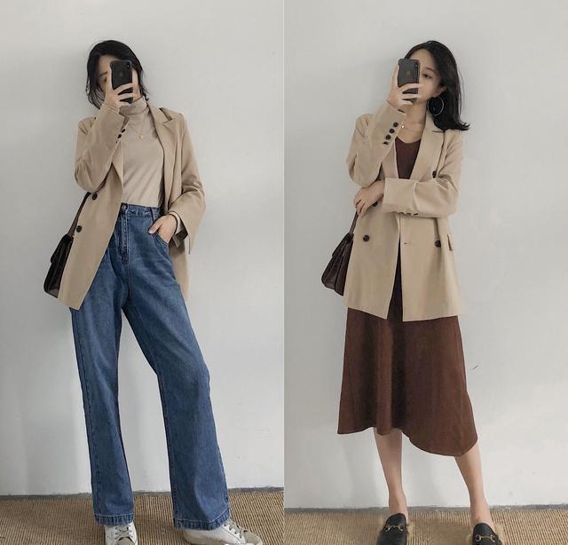 针织衫搭配半身裙可以算是经典的CP组合了,在秋天穿着非常好看,毛衣让温暖属性加乘,裙子又带有飘逸感,让夏天的风尚延续到秋天,仙气十足。重要的是,这样的穿搭不挑身材,微胖女生、小个子女生这样穿可以扬长避短,身材好的女生更是美到炸裂!这样的穿法,冬季也能延用,外面套一件大衣,下身加一条肉色加绒打底裤,保暖又新潮,层次感很美。