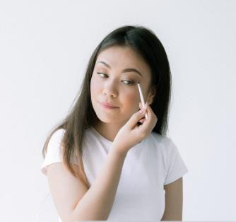 使用卧蚕笔之前需要先用眼影和眼线将眼妆画好,接着取出卧蚕笔,先自己笑一下看看卧蚕的位置,并用卧蚕笔棕色的那头在卧蚕处轻轻勾勒,根据效果自行调整位置。接着用白色的那头提亮眼头和下睫毛的根部便可。