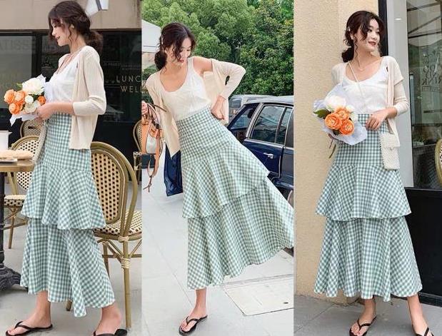 6. 格子高腰蛋糕连衣裙 蛋糕连衣裙就是今年被抖音上的网红小姐姐们带起来的一款单品,经典时尚的格子设计,裹胸式的高腰提升腰线的同时还能妥妥的展现出你的小细腰,拼接出的蛋糕裙身修饰性极强,层次感丰富还能遮住身上多余的肉肉,穿上后,你绝对是街上最靓的那个妞。