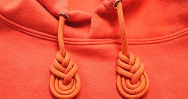 卫衣的抽绳其实不止蝴蝶结这样一种绑法,还有很多种绑法,比如:螺旋绕圈绑法,樱花绑法等,这些都可以把抽绳给绑出花样来。